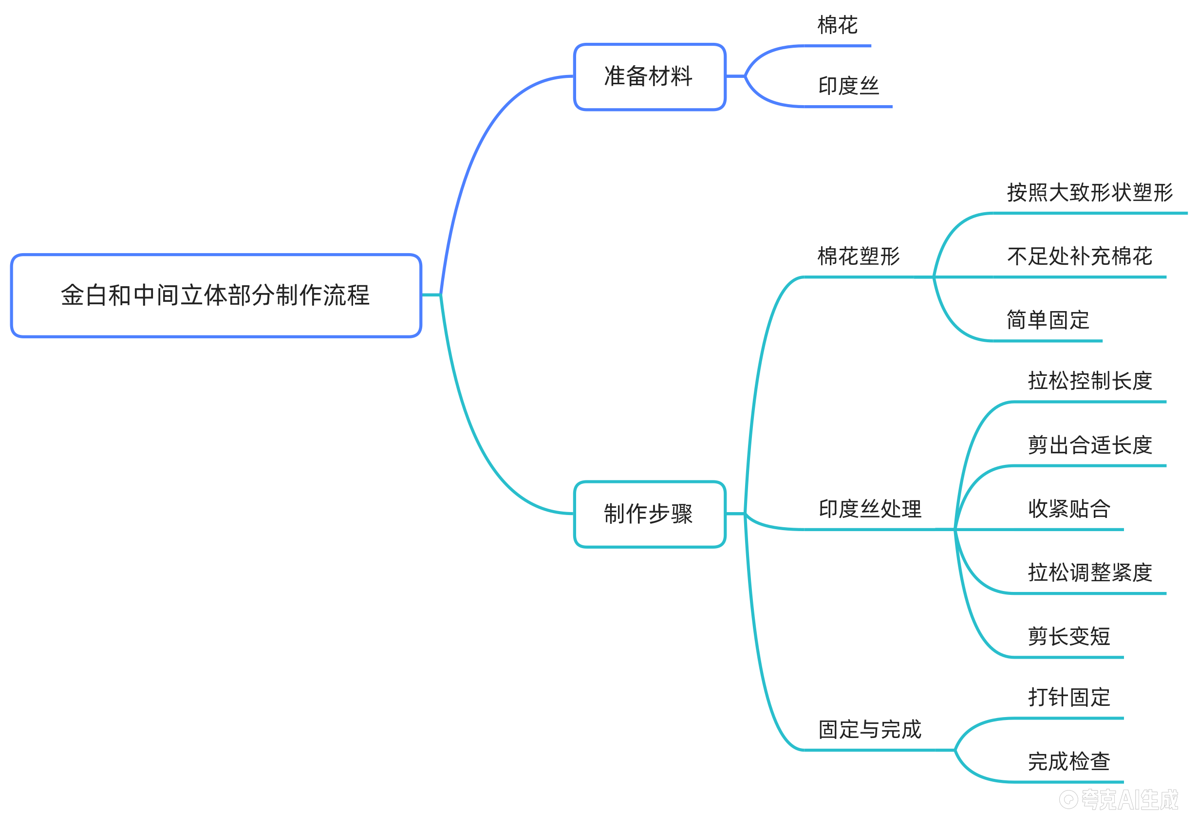 将印度丝绕至立体结构正中心位置,打一个小型固定针。